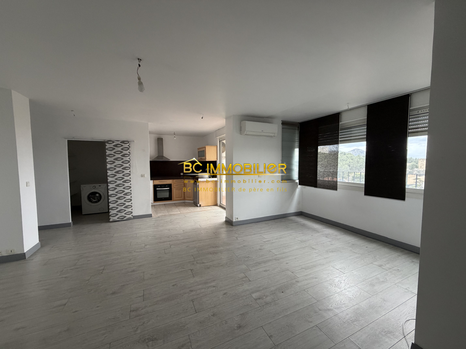 d'une belle pièce à vivre avec cuisine ouverte, d' une grande buanderie, d' une chambre avec rangements, d' une grande salle de bain avec WC.