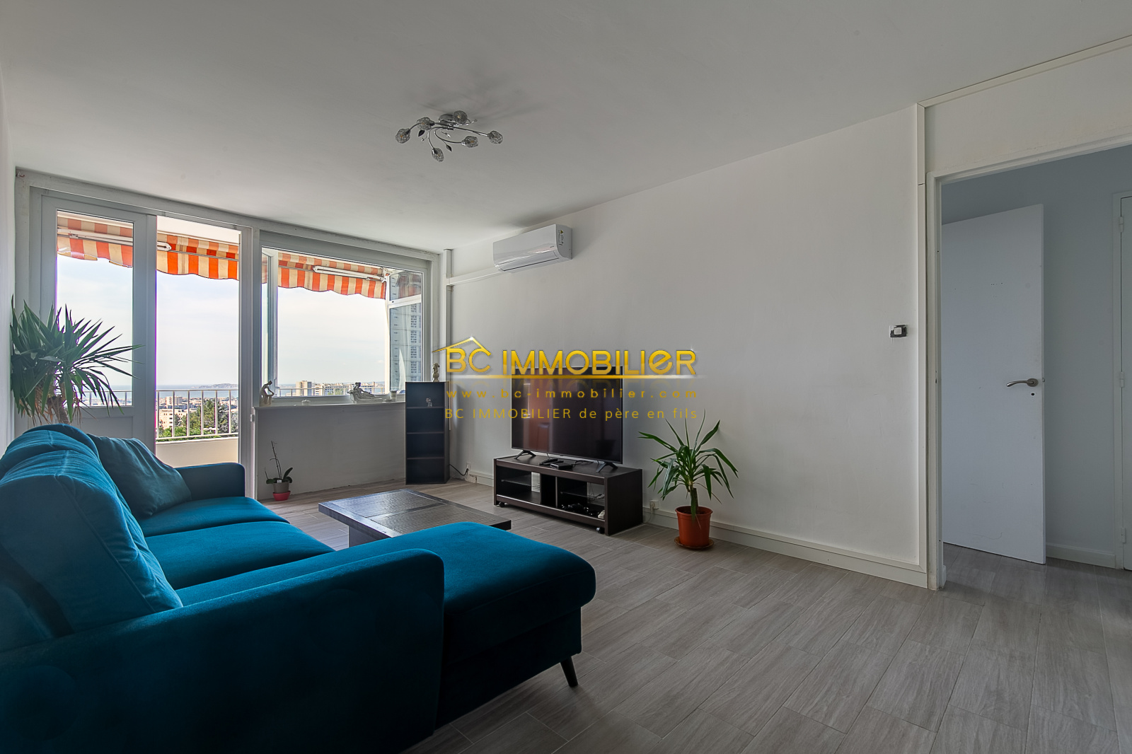 En très bon état général l'appartement se compose d'une entrée, d'une pièce à vivre d'environ 31m² avec salon et cuisine moderne et équipée, d'un balcon offrant une vue dégagée sur la mer et la ville de Marseille, de deux chambres, d'une espace bureau/dressing d'environ 8m² ,d'une salle d'eau et d'un WC indépendant.